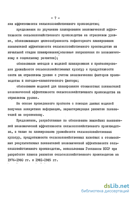 разработать экономико-математические модели планирования показателей экономической эффективности сельскохозяйственного производства, урожайности сельскохозяйственных культур, продуктивности скота, себестоимости основных видов сельскохозяйственной продукции и апробировать их в реальном режиме функционирования подсистемы "сельское хозяйство" АСПР Госплана БССР.