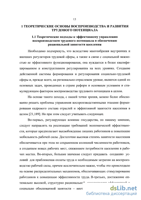 1. Теоретические основы воспроизводства и развития трудового потенциала 13