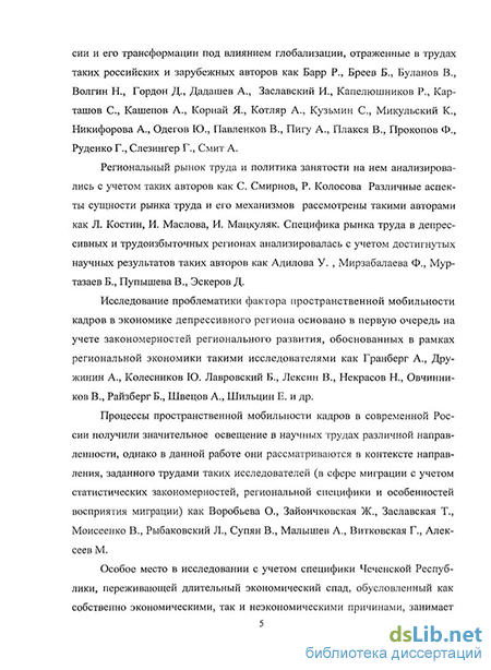Степень разработанности проблемы. Анализ факторов, тенденций, региональной специфики рынка труда и его параметрических особенностей в диссертации исследуются на обширном круге источников, среди которых как публикации, раскрывающие модели рынка труда на региональном и общероссийском уровнях, так и труды, посвященные специфике рынка труда России и его трансформации под влиянием глобализации, отраженные в трудах таких российских и зарубежных авторов как Р. Барр, Б. Бреев, В. Буланов, Н. Волгин, Д. Гордон, А. Дадашев, И. Заславский, Р. Капелюшников, С. Карташов, А. Кашепов, Я. Корнай, А. Котляр, С. Кузьмин, К. Микульский, А. Никифорова, Ю. Одегов, В. Павленков, А. Пигу, В. Плакся, Ф. Прокопов, Г. Руденко, Г. Слезингер, А. Смит.