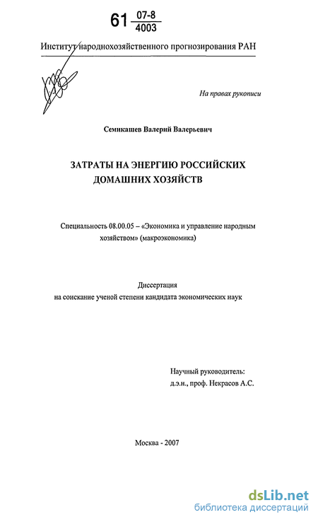 Актуальность исследования. Население России является крупным потребителем производимых в стране топливно-энергетических ресурсов (ТЭР): в 2004 г. на его долю приходилось 22% совокупного конечного потребления ТЭР в РФ. Масштабы энергопотребления домохозяиств являются существенной составляющей в энергетическом балансе страны, а затраты на эти цели стали заметной и все возрастающей частью в бюджетах домохозяиств.