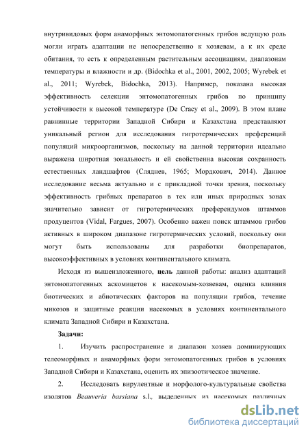 Для успешного заражения хозяев анаморфными энтомопатогенными грибами обычно требуются весьма высокие дозы, составляющие тысячи, десятки и даже сотни тысяч конидий на одну особь (Ignoffo et al., 1989; Ment et al., 2010; Jaronski, 2010; Dubovskiy et al., 2013b). В природе воздействие на насекомых таких доз инфекции не может быть частым (Борисов и др., 2001), в особенности в условиях континентального климата. Несмотря на это гибель насекомых от анаморфных энтомопатогенных грибов регистрируется постоянно и стабильно в самых разных биоценозах. Возможно, это связано с тем, что дозы патогенов могут быть значительно снижены для насекомых, ослабленных различными факторами среды, как абиотической природы, (субоптимальные температуры, инсектициды), так и биотическими (качество и количество корма, присутствие сопутствующих инфекций и др.). В частности, в недавнем обзоре Дж. Бумсма с соавт. (Boomsma et al., 2014) была высказана идея о том, что грибы генералисты поражают преимущественно насекомых с ослабленным иммунитетом. Авторы сравнивают низко-специализированные виды грибов с хищниками, выбирающими наиболее слабую жертву, не зависимо от ее видовой принадлежности.