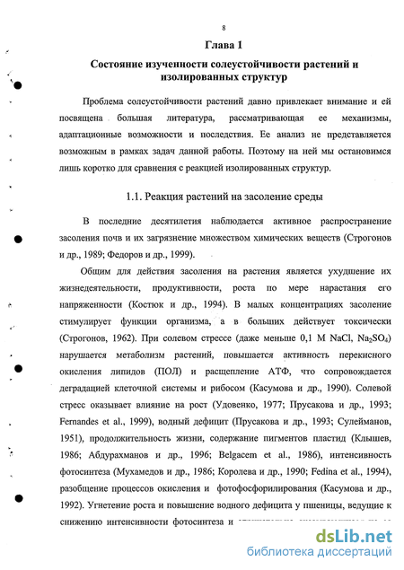 Глава 1. Состояние изученности солеустойчивости растений и изолированных структур 8