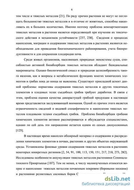 свойства и физиологическая роль металлов в метаболических процессах, видовые особенности растений и грибов, а также содержание тяжелых металлов в почвообразующих породах, в боровых песках и атмосфере.