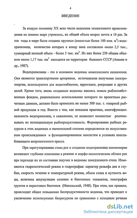 Водохранилища - это в основном водоемы комплексного назначения. Они являются транспортными артериями, источниками получения электроэнергии, используются для водоснабжения, ирригации, рекреации и других целей. Кроме того, вновь созданные водоемы явились новым рыбохозяйст-венным фондом, рациональное использование которого по проектным расчетным данным, должно было приносить не менее 300 тыс. т. товарной рыбной продукции в год. Вместе с тем, как показала практика, многофункциональность водохранилищ, к сожалению, не позволяет полностью реализо-вывать их потенциальную рыбопродуктивность. Формирование рыбных ресурсов в этих водоемах в значительной степени определяется их искусственным происхождением и функционированием экосистем в условиях неослабевающего антропогенного пресса.