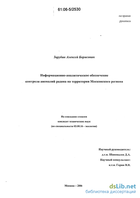 Глава 3. Методика комплексного экологического мониторинга территорий Москвы и Московской области на радоноопасность 59