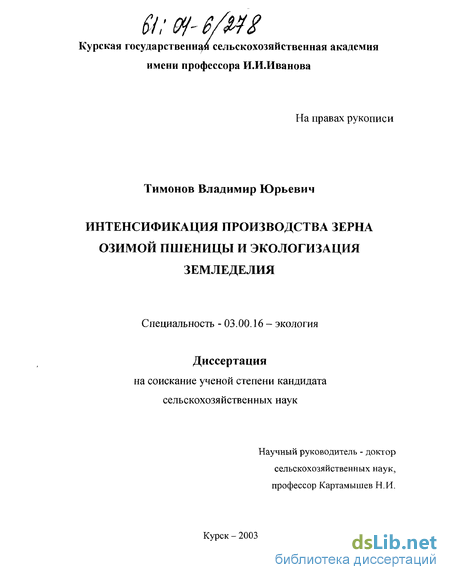 1 Основные факторы интенсификации производства зерна озимой пшеницы (обзор литературы) 7
