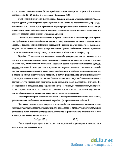 1.1.2. Характеристика процессов загрязнения снежного покрова 10