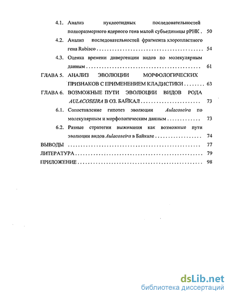 6.1. Сопоставление гипотез эволюции Aulacoseira по молекулярным и морфологическим данным 73