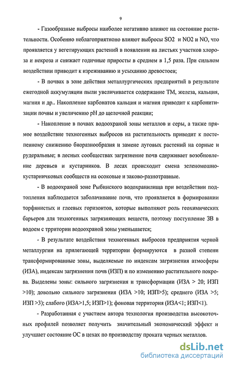 Учтены обобщения исследований Главной Геофизической обсерватори-ии, сделанные в 1992-1995 г А.В.Герасимовым и В.А.Федоровым. Нами проанализированы данные по изменению состояния окружающей среды с момента открытия Череповецкого и Омутнинского металлургических комбинатов по настоящее время. Были сравнены опубликованные данные различных исследователей. Составлены таблицы по динамике состояния ОПС и её компонентов. Это позволило выявить динамические тенденции в растительном и почвенном покровах средней и южной тайги под влиянием загрязнения от металлургических предприятий. Проведено обобщение литературных данных по влиянию черной металлургии на состояние ОС, сравнены технологии холодной прокатки черных металлов и предложенной горячей прокатки на технологической линии. Монтированной на Омутнинском металлургическом комбинате. Выявлен состав загрязнений при разных технологиях проепта. Проведена оценка экологического эффекта от использования новой установкина состояние ОС в цехах прокатного производства.