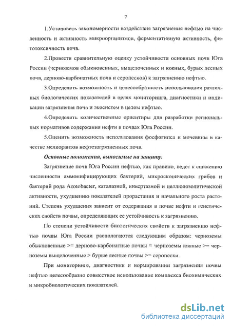 Цель и задачи исследования. Цель работы — исследовать изменение эколого-биологических свойств почв Юга России при загрязнении нефтью.