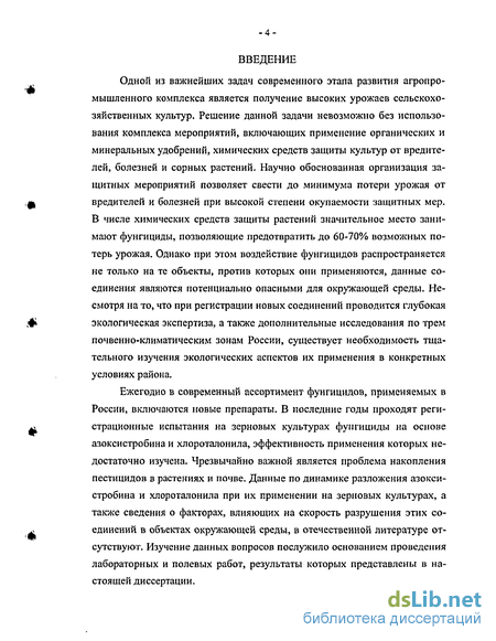 Ежегодно в современный ассортимент фунгицидов, применяемых в России, включаются новые препараты. В последние годы проходят реги- ^ страционные испытания на зерновых культурах фунгициды на основе азоксистробина и хлороталонила, эффективность применения которых недостаточно изучена. Чрезвычайно важной является проблема накопления пестицидов в растениях и почве. Данные по динамике разложения азоксистробина и хлороталонила при их применении на зерновых культурах, а также сведения о факторах, влияющих на скорость разрушения этих со- ^ единений в объектах окружающей среды, в отечественной литературе от- сутствуют. Изучение данных вопросов послужило основанием проведения лабораторных и полевых работ, результаты которых представлены в настоящей диссертации.