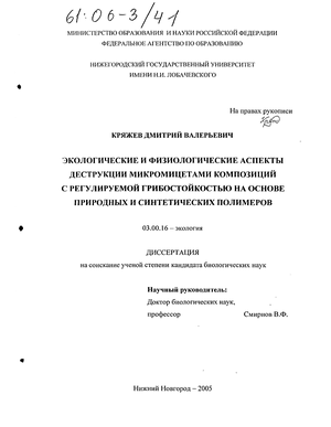 исследовать роль отдельных ферментов грибов в деструкции композиций на основе синтетических и природных полимеров.