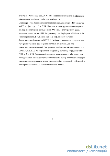 Благодарности. Выражаю благодарность за неоценимую помощь при подготовке диссертации всем моим коллегам и особенно благодарен своему научному руководителю, учителю, д.б.н., доценту О. Н. Деминой за всестороннюю помощь в подготовке данной работы.