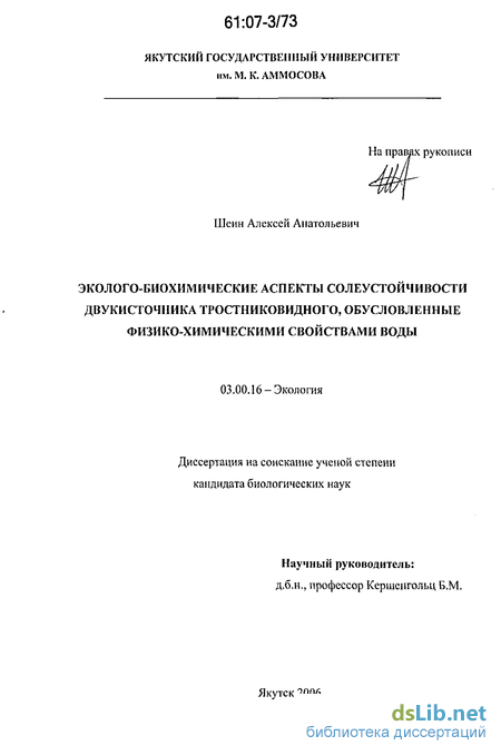 В экологии под солеустойчивостью растений понимают способность растений проходить полный цикл развития на засоленных почвах [Денисов, Стрельцова, 1991; Строганов, 1962]. В физиологии - способность растений поддерживать ионный гомеостаз в цитозоле при засолении за счет биохимических механизмов, осуществляющих обмен веществ в клетке при высоких концентрациях соли во внешней среде [Меерсон, 1986; Барабой и др., 1992; Gueta-Dahan et al, 1997]. С точки зрения физико-химических свойств воды солеустойчивость растений определяется долей диффузной, некластерировашюй воды, не включающейся в гидратные оболочки ионов в почвенных растворах, что приводит к повышению её доступности для корней растений даже в условиях засоления за счет увеличения подвижности молекул воды.