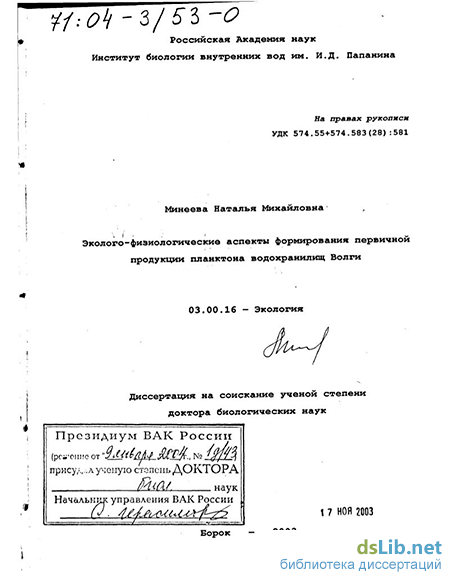 Апробация работы. Материалы диссертации доложены на следующих научных мероприятиях: Биологические ресурсы водоемов Вологодской области, их охрана и рациональное использование (Белозерск, 1977); Биологические аспекты изучения и рационального использования животного и растительного мира (Рига, 1981); Радиационная климатология и прикладные аспекты актинометрии (Иркутск, 1984); Круговорот вещества и энергии в водоемах (Иркутск, 1985); Проблемы исследования крупных озер СССР (Ленинград, 1985); V - VIII Съезды Гидробиологического общества РАН (ВГБО АН СССР) (Тольятти, 1986, Мурманск, 1991; Казань, 1996; Калининград, 2001); Охрана и рациональное использование внутренних вод Центра и Севера Русской равнины (Ярославль, 1986); Рабочие совещания по программе "Интеркосмос" (Ленинград, 1987, 1988, 1990); Методические вопросы изучение продукции планктона внутренних водоемов (Борок, 1989); Антропогенные изменения малых озер. Причины, последствия, возможность управления (С. Петербург, 1990); II - III International Conference on Reservoir Limnology and Water Quality (Ceske Budejovice, 1992, 1997); Оценка продуктивности фитопланктона (Иркутск, 1992); Экологические проблемы бассейнов крупных рек (Тольятти, 1993, 1998); 1, IV International Lake Ladoga Symposium (С. Петербург, 1993; Новгорорд, 2002); II International IAWQ specialized Conference and Symposia on Diffuse Pollution (Brno-Prague, 1995); Современное экологическое состояние Верхней Волги (Ярославль, 1994); Многолетние гидробиологические наблюдения на внутренних водоемах (С. Петербург, 1994); Динамика и термика рек, водохранилищ, внутренних и окраинных морей (Москва, 1994); Symposium in monitoring of water pollution (Борок, 1994); IV и V Всероссийская конференция по водным растениям (Борок, 1995, 2000); Биологические ресурсы Белого моря и внутренних водоемов Европейского Севера (Петрозаводск, 3995); Management of Lakes and Reservoirs During Global Climate Change (Prague, 1995); II Всероссийская Байкальская конференция (Иркутск, 1995); Эколого-физиологические исследования водорослей (Борок, 1996); Биотехноэкологические проблемы бассейна Верхней Волги (Ярославль, 1998); Озерные экосистемы: биологические процессы, антропогенная трансформация, качество воды (Минск, 1999); Primary Production of Planet Earth (Plymouth, 1999); Symposium for European Freshwater Sciences (Antwerp, 1999); Проблемы гидроэкологии на рубеже веков (СПб, 2000); V Всероссийская конференция Гидроботаника-2000 (Борок, 2000); Актуальные проблемы водохранилищ (Борок, 2002).