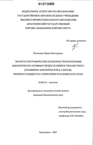 В настоящее время на основании многочисленных исследований и тщательного изучения достижений народной медицины все большее признание находит применение в лечении и профилактики трудноизлечимых заболеваний растительные лекарственные препараты. Огромный резерв полезных растений с повышенным содержанием различных ценных веществ представляет флора Сибири, в том числе такой регион, как Красноярский край. На его территории произрастает более 100 видов лекарственных растений, которые используются или могут быть использованы в качестве источников ценных биологически активных веществ для обогащения ими продуктов питания, а также в лечении и профилактике трудноизлечимых заболеваний.