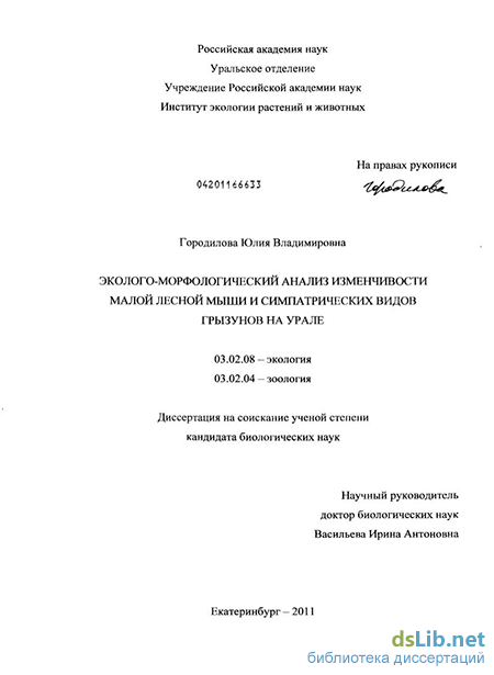 Цель исследования: Провести эколого-морфологический анализ изменчивости в популяциях малой лесной мыши и симпатрических видов грызунов, а также динамики морфоразнообразия таксоценов грызунов в естественных (контрольных) и техногенных (импактных) местообитаниях на Урале.