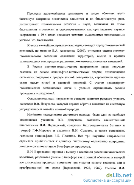 Процессы взаимодействия организмов и среды обитания через биогенную миграцию химических элементов и их биологическую роль рассматривает наука – геохимическая экология, к числу важнейших практических задач которой относятся оценка эколого-геохимического состояния отдельных территорий, оценка и прогноз развивающихся в их пределах различных эколого-геохимических изменений (Алексеенко, 2006).
