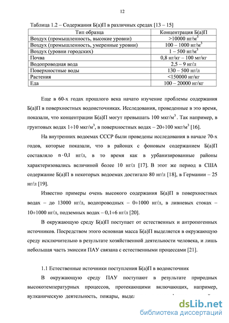 1.1 Естественные источники поступления Б(а)П в водоисточник 12