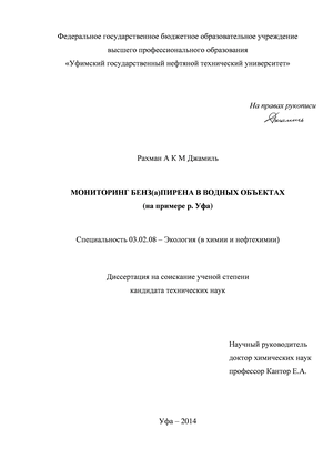 Практическая значимость: предложены модели для прогнозирования содержания Б(а)П в створах р. Уфа; сформулированы рекомендации по использованию для очистке воды от Б(а)П и других ПАУ мезопористых сорбентов с повышенной долей мезопор размером 2 - 10 нм. предложены технические решения для снижения содержания Б(а)П и других ПАУ в воде хозяйственно-бытового назначения при высоком их содержании в воде водоисточника. Апробация работы. Результаты исследований обсуждены на 64-й научно практической конференции студентов, аспирантов и молодых ученых УГНТУ (г. Уфа, 2013 г.), Международной научно-практической конференции «Стратегические направления и инструменты повышения эффективности сотрудничество стран-участников Шанхайской организации сотрудничества: Экономика, Экология, Демография» (г. Уфа, 2013 г.), Международной научно-практической конференции «Актуальные проблемы технических, естественных и гуманитарных наук» (г. Уфа, 2013 г.), Всероссийской научно-практической конференции с международным участием «Малоотходные, ресурсосберегающие химические технологии и экологическая безопасность» (г. Стерлитамак, 2013 г.), Международной научно-технической конференции «Защита окружающей среды от экотоксикантов» (г. Уфа, 2014 г.).