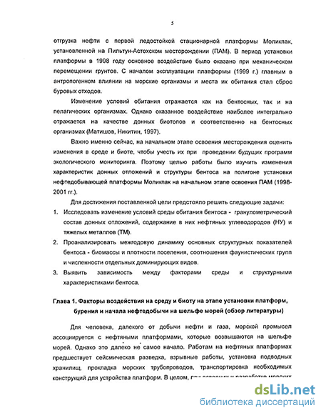 Глава 1. Факторы воздействия на среду и биоту на этапе установки платформ, бурения и начала нефтедобычи на шельфе морей (обзор литературы) 5