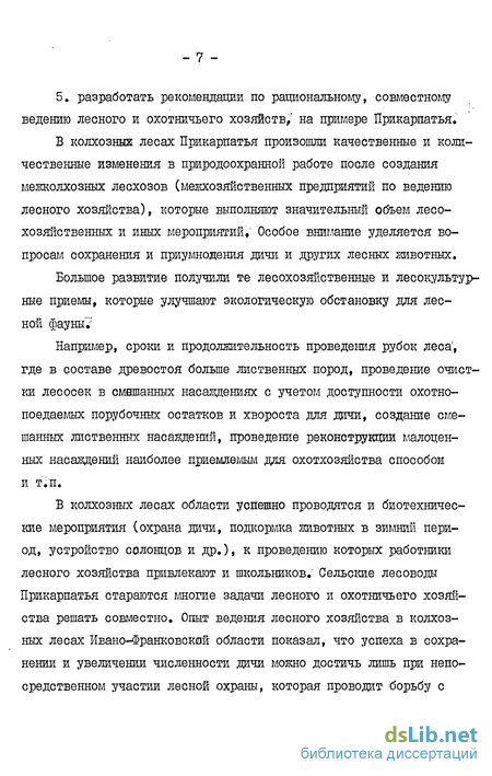 5. разработать рекомендации по рациональному, совместному ведению лесного и охотничьего хозяйств," на примере Прикарпатья.