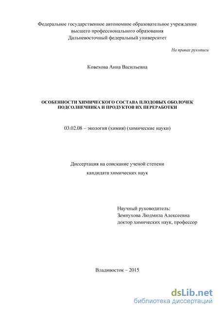 Одним из видов недревесного растительного сырья являются отходы переработки подсолнечника (Helianthus annum L.), в частности плодовые оболочки (лузга, шелуха). В связи с увеличением производства растительных масел как в нашей стране, так и в мире, возрастает количество таких отходов на маслозаводах, перед которыми остро встаёт проблема их утилизации. Подсолнечная лузга, как сырьё для химической промышленности, в настоящее время используется мало, и, в основном, сжигается. Отсутствие готовых технологий комплексного использования лузги подсолнечника, вероятно, связано с недостаточным объёмом знаний о её полном химическом составе и свойствах соединений, которые могут быть получены.