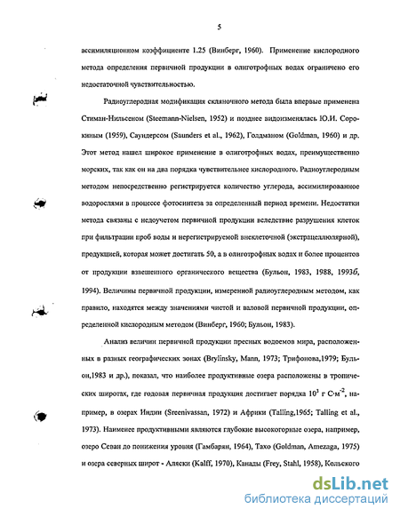 Первичная продукция измерялась скляночным методом в радиоуглеродной модификации (Steemann-Nielsen,1952; Сорокин, 1959; Романенко, 1985) в соответствии с методическими указаниями В.И. Романенко и СИ. Кузнецова (Романенко, Кузнецов, 1974; Кузнецов, Дубинина, 1989).