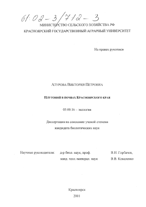 В подтверждение этого свидетельствуют результаты проб почв, отобранные в селе Атаманово (Сухобузимский район). Село расположено на противоположном берегу Енисея не более чем в 10 километрах от ГХК. Считается, что основные газо-аэрозольные выбросы комбината выпали на его территорию. Содержание 239240Ри в поверхностных пробах почвы, отобранных на незатапливаемых его участках, достигало 5,9 Бк/кг, что превышает установленный уровень глобальных выпадений в 17 раз. Эти данные говорят о воздушном пути поступления плутония с ГХК на территории близлежащих населенных пунктов. О водном пути поступления плутония в окружающую среду говорит тот факт, что содержание плутония на затапливаемых участках села достигает 10,6 Бк/кг (приложение 4, табл. 1).