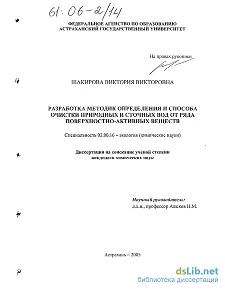 Научная новизна. В работе впервые разработаны научные основы методик сорбционного концентрирования ряда поверхностно-активных веществ на опоках Астраханской области, использованные для очистки природных и сточных вод нефте- и газоперерабатывающих производств.