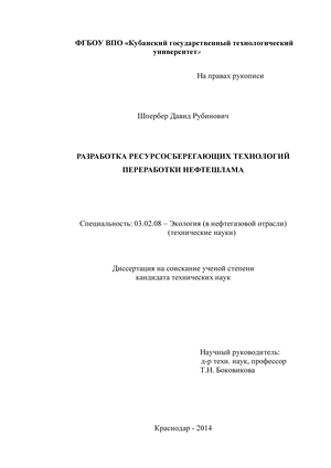 ГЛАВА 3. Разработка ресурсосберегающих технологий переработки нефтешлама