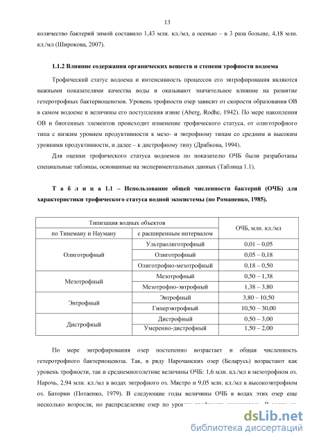 1.1.2 Влияние содержания органических веществ и степени трофности водоема 13