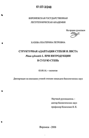 Исследования, посвященные характеристике структуры и качества древесины, а также вопросам структурной адаптации сосны обыкновенной могут быть широко использованы при ее интродукции в сухую степь.