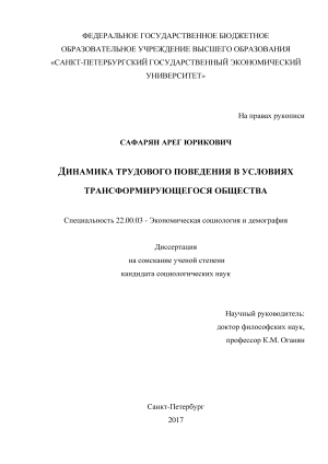 Цель диссертационной работы. Цель диссертационного исследования заключается в социологическом осмыслении и эмпирической оценке влияния перехода к постиндустриальной модели хозяйствования на трудовое поведение.
