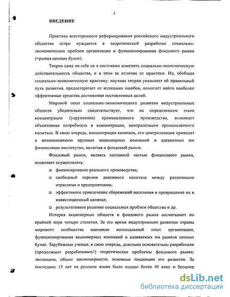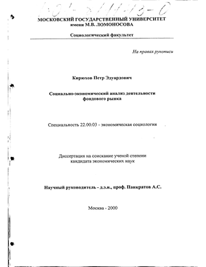 Отсюда, своей главной задачей диссертант считает провести социально-экономический анализ организации и деятельности фондового рынка России.