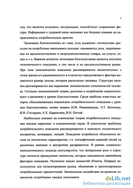 Для отечественной социологии изучение потребительского поведения является относительно новым направлением. В основном исследования потребителей носят маркетинговый характер. Среди ученых, занимающихся изучением потребительского поведения, можно назвать И.В. Алешину, В.Я Ельмеева, Г.В. Еремичеву, В.И. Ильина, В.Н. Минину, Е. Порецкину.