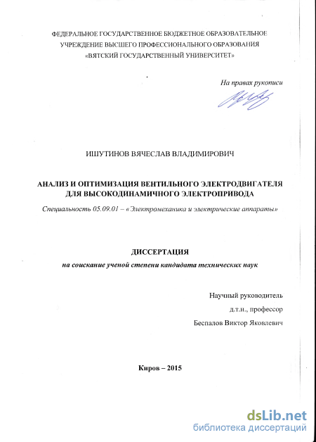 В частности не в полной мере исследованы вопросы синтеза и анализа данного класса ВДПТ, а в частности многокритериальная оптимизация ВДПТ по энергетическим и массогабаритным показателям с помощью таких методов как методы нелинейного программирования (МНП) и генетический алгоритм (ГА), настройки ГА под конкретную задачу оптимизации ЭМ, анализа работы ВДПТ в составе ЭП в переходных режимах при отработке ступенчатого и синусоидального входного сигнала.