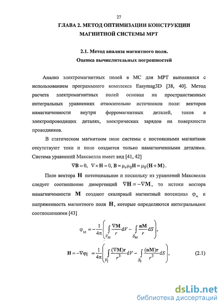 Глава 2. Метод оптимизации конструкции магнитной системы МРТ 27