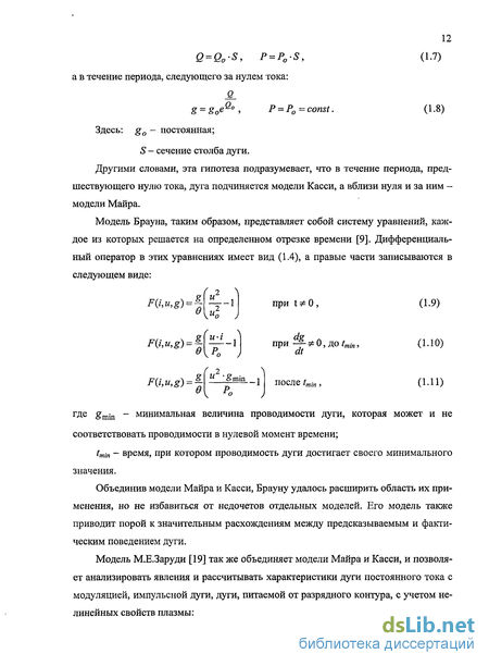 1.1. Интегральные динамические модели электрической дуги 9