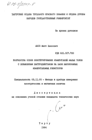 3.3. ИМТ с неполной коррекцией 3.4. Влияние переключения поддиапазонов на быстродействие и устойчивость ИМТ 75 3.5. Согласование ИМТ с объектом измерения 81 3.6. Основные результаты и выводы 83 Глава ІV. Анализ порога чувствительности /шумов/ быстро действующих ИМТ 84 4.1. Тепловой шум 85 4.2. Дробовой шум 89 4.3. Фликкер-шум 89 4.4. Суммарный шумовой ток ИМТ 96 4.5. Экспериментальное исследование шумов ИМТ 99 4.6. Динамический диапазон ИМТ 104 4.7. Основные результаты и выводы 105 Глава V. Разработка конструкции быстродмствущего шт типа ут-8і05 и его исследование . 107 5.1. Электрометрический усилитель 109 5.1.1. Дрейф нулевого уровня НО 5.1.2. Методы периодической компенсации дрейфа по току 115 5.1.3. Непрерывная компенсация дрейфа по току 116 5.1.4. Конструкция и исследование ЭУ . 122 5.1.5. Компенсация постоянного фонового тока 127 5.2. Переключатель ВИР. Анализ погрешностей вносимых переключателем ВИР 128 5.3. Частотные погрешности корректирующих цепей 134 5.4. Температурная зависимость импеданса ВИР.. 136 5.5. Шумы ИМТ типа УТ-8І05 137 5.5.1. Щум 0У в корректирующих цепях ИМТ 137 5.5.2. Виброшум 140 5.6. Основные технические данные и характери стики ИМТ типа УТ-8І05 141 5.7. Основные результаты и выводы 143 Заключение 144 Список использованной литературы 149 Приложение 158 Введение к работе