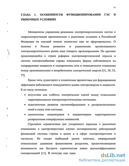 Глава 1. Особенности функционирования ГЭС в рыночных условиях 11