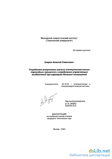 Первый из этих способ не получил распространения, так как вследствие инерционности системы регулирования турбины в энергосистемах с существенной нагрузкой возникает переторможение. Наибольшее распространение получил второй способ, при реализации которого алгоритм действия устройства определяется предварительными расчетами устойчивости, заранее находятся критерии, по которым автоматическое устройство в момент аварии выбирает нужную программу и вводит ее в действие. Именно для такого способа управления алгоритмы, построенные на применении метода вариации параметров для определения управляющих воздействий, имеют наибольшую перспективу применения.