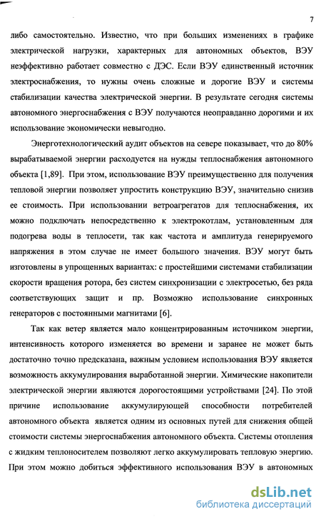7 либо самостоятельно. Известно, что при больших изменениях в графике электрической нагрузки, характерных для автономных объектов, ВЭУ неэффективно работает совместно с ДЭС. Если ВЭУ единственный источник электроснабжения, то нужны очень сложные и дорогие ВЭУ и системы стабилизации качества электрической энергии. В результате сегодня системы автономного энергоснабжения с ВЭУ получаются неоправданно дорогими и их использование экономически невыгодно.