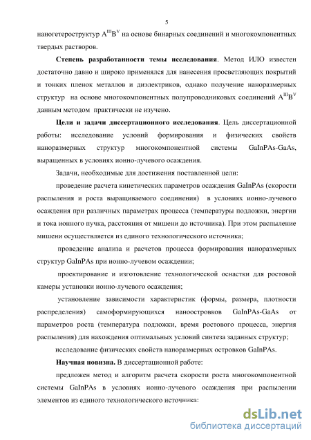 диссертационной работы: исследование условий формирования и физических свойств наноразмерных структур многокомпонентной системы GaInPAs-GaAs, выращенных в условиях ионно-лучевого осаждения.