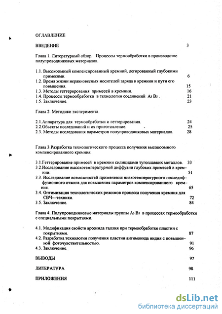 Термообработка пластин антимонида индия для фотоприёмных устройств с применением геттера повышает время жизни носителей заряда. '" " Структура и обьем диссертации.