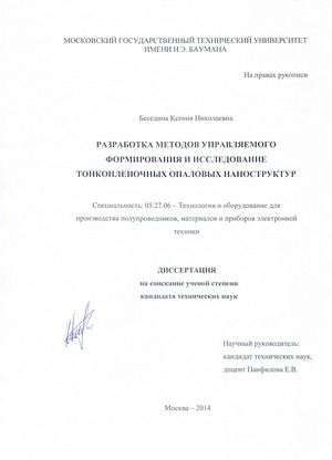Перспективы развития современной электронной техники связываются с наноструктурированными материалами. Во всем мире осуществляется активный поиск и разработка новых технологий, основанных на физических процессах самоорганизации наноструктурированных систем, которые позволили бы миниатюризировать элементы с возможным улучшением требуемых значений выходных параметров и повысить технологичность их производства.