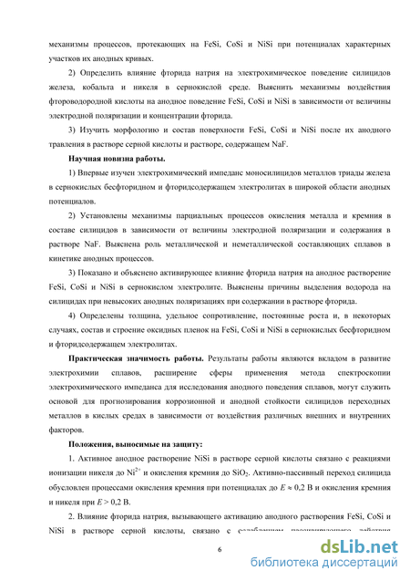 В процессе роста пленки диоксида кремния через пленку должны мигрировать катионы или анионы. При анодировании кремния ионную проводимость пленки обеспечивает миграция кислородсодержащих частиц (ОН- или О2-) к границе раздела кремний/оксид [110]. В случае NiSi, как указано выше, образуется рыхлая, пористая, плохо сцепленная с подложкой пленка SiO2, почти не препятствующая протеканию электрохимических реакций на электроде под пленкой. Поэтому в случае NiSi-электрода в области активного растворения нет необходимости рассматривать влияние процессов миграции ионов в пленке.