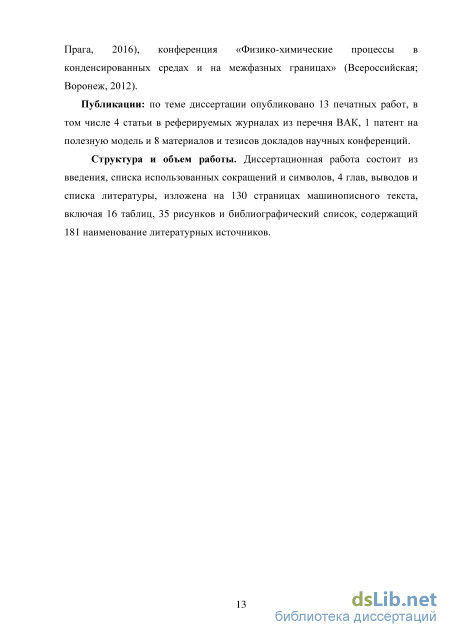 Структура и объем работы. Диссертационная работа состоит из введения, списка использованных сокращений и символов, 4 глав, выводов и списка литературы, изложена на 130 страницах машинописного текста, включая 15 таблиц, 33 рисунков и библиографический список, содержащий 181 наименование литературных источников.
