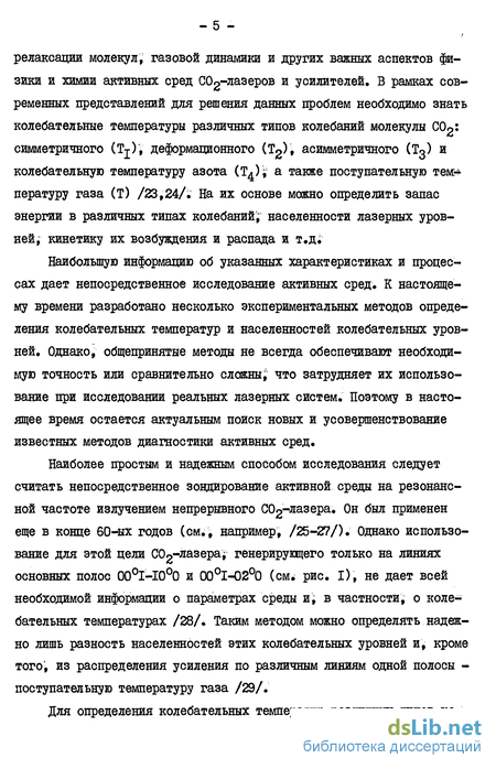 Дальнейший прогресс во всех этих направлениях, безусловно, требует более высокого уровня понимания процессов возбуждения и релаксации молекул, газовой динамики и других важных аспектов физики и химии активных сред С02-лазеров и усилителей. В рамках современных представлений для решения данных проблем необходимо знать колебательные температуры различных типов колебаний молекулы С02: симметричного (Tj); деформационного (Т2), асимметричного (Т3) и колебательную температуру азота (Т^ї а также поступательную тем* пературу газа (Т) /23,24/. На их основе можно определить запас энергии в различных типах колебаний^ населенности лазерных уровней^ кинетику их возбуждения и распада и т.д;