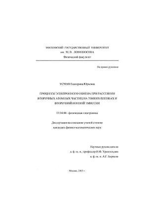 Усман Екатерина Юрьевна. Процессы электронного обмена при рассеянии атомных частиц на тонких пленках и вторичной ионной эмиссии : диссертация ... кандидата физико-математических наук : 01.04.04.- Москва, 2003.- 107 с.: ил. РГБ ОД, 61 03-1/1148-5